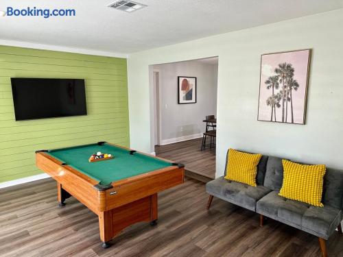 Step into a bright and welcoming four bedroom, two bathroom home designed for comfort, fun, and easy living. There is plenty of space for families and groups to spread out with a cozy living room, a fully equipped kitchen, and a private pool just steps from the back door. The home is peaceful, easy to settle into, and set up with everything you need for a relaxed and memorable stay in Orlando. What truly sets this home apart is the entertainment. Enjoy your own private arcade experience with a full size arcade machine, a pool table for friendly competition, outdoor arcade basketball, and a mini golf setup right in the backyard. Inside, you will find a large collection of board games perfect for family game nights, rainy days, or winding down in the evenings. Whether you want to relax by the pool or turn the night into game time, this home delivers. Sleeping Arrangements ⭐️ King bed in the master bedroom ⭐️ Two queen beds in spacious guest rooms ⭐️ Four twin beds, great for kids or extra guests ⭐️ Sofa bed in the living area ⭐️ Futon for added sleeping space Amenities ⭐️ Private pool for relaxing and cooling off ⭐️ Pool table and full size arcade machine ⭐️ Outdoor arcade basketball and mini golf ⭐️ Large selection of board games for all ages ⭐️ Outdoor grill for meals at home ⭐️ Fully equipped kitchen ⭐️ Washer and dryer for longer stays ⭐️ Fast Wi Fi and a dedicated workspace for remote work Perfect for families, groups, and anyone looking for a fun, comfortable stay close to everything Orlando has to offer.
